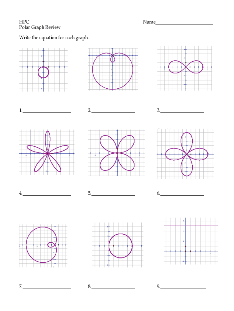 HPC Polar Graph ReviewName___Write the equation for each graph. F () 2s i n() 224552255455262 844101.___2.___3.___f () 5c o s(2)644422555522444.___255245.___6.___6 4 424 22 1055 2552 42 4 67.___8.___9.___10.