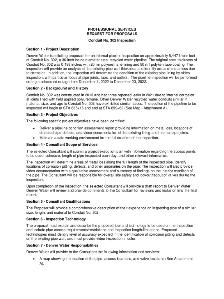 Get the free PROFESSIONAL SERVICES REQUEST FOR PROPOSALS Conduit No ... - Denver Water