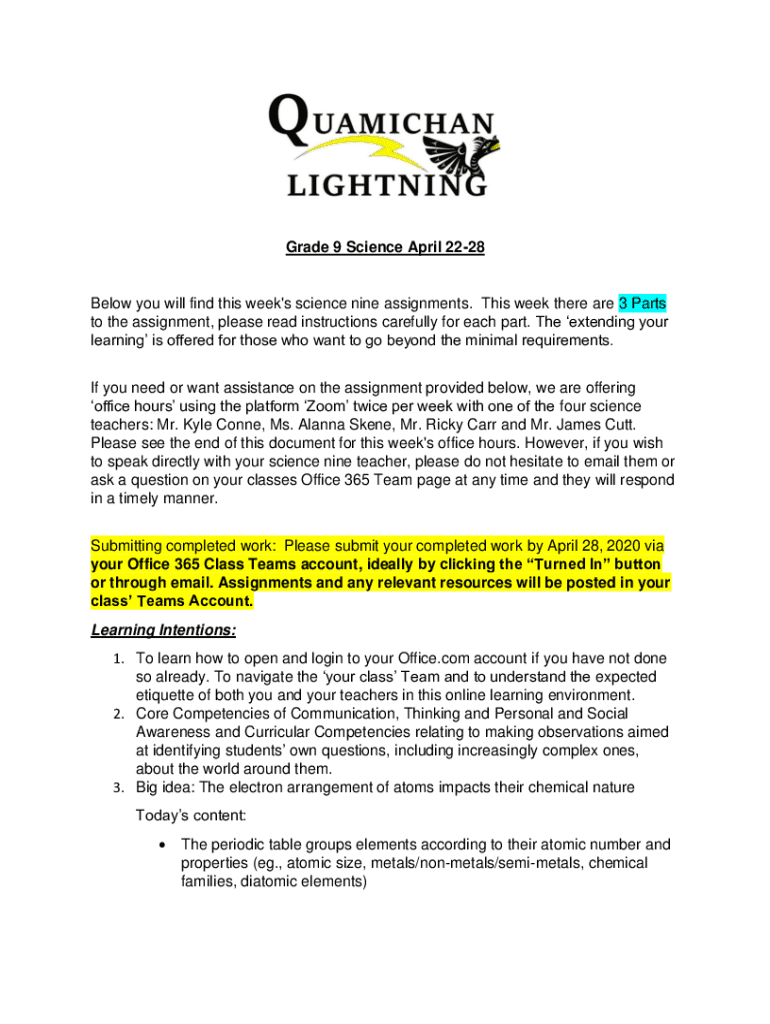 Grade 9 Science April 2228Below you will find this week\'s science nine assignments. This week there are 3 Parts to the assignment, please read instructions carefully for each part. The extending