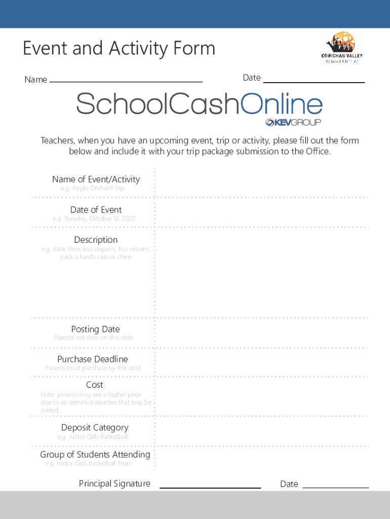DateNameTeachers, when you have an upcoming event, trip or activity, please fill out the form