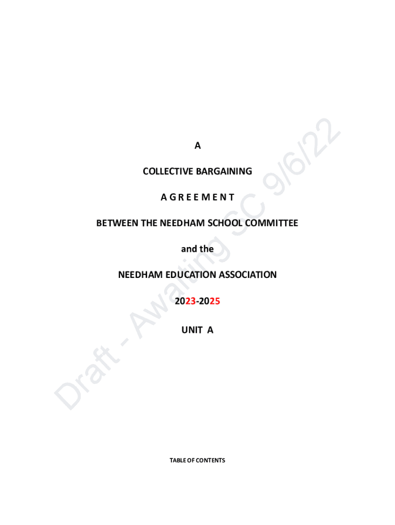 Get the free A COLLECTIVE BARGAINING A G R E E M E N T BETWEEN THE NEEDHAM SCHOOL ...