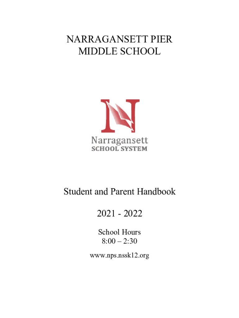NARRAGANSETT PIER MIDDLE SCHOOLStudent and Parent Handbook 2021 2022 School Hours 8:00 2:30 www.nps.nssk12.orgCONTENTS Human Resources2Principals Message3Mission Statement4Vision Statement4Faculty