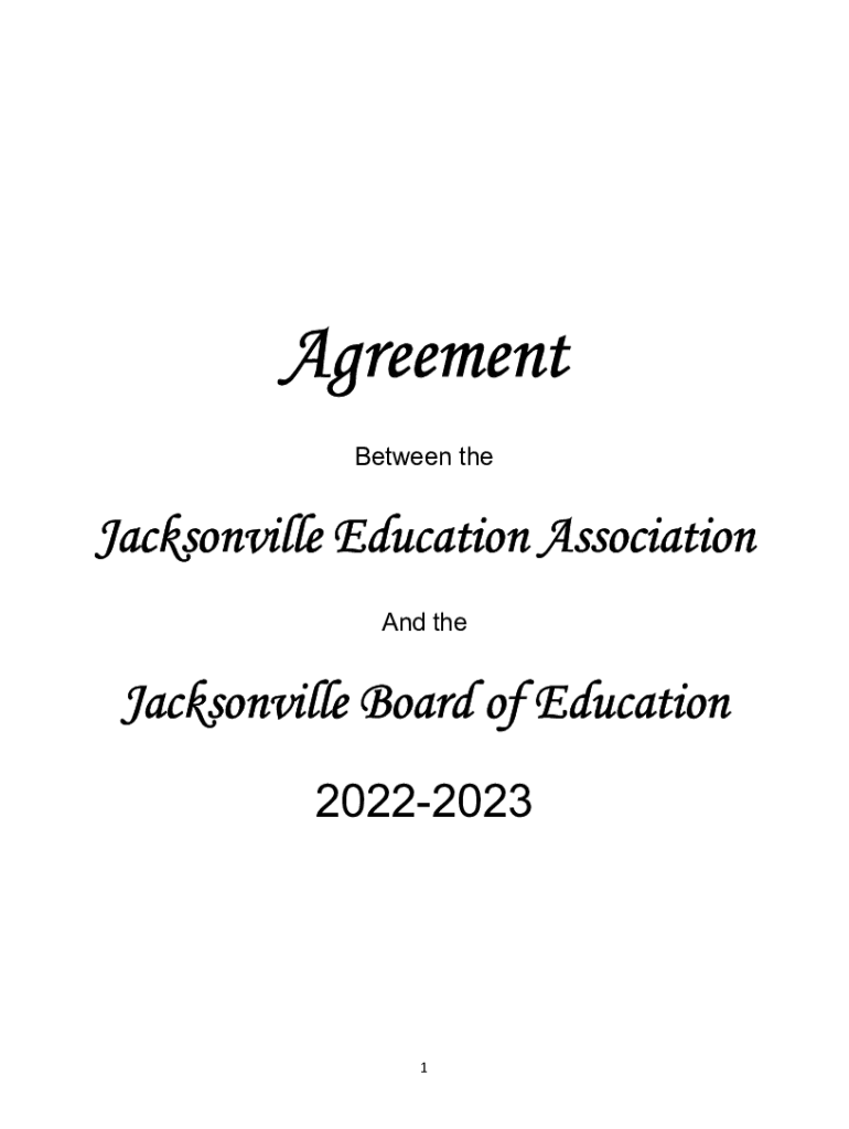 Agreement Between the Jacksonville Education Association And the Jacksonville Board of Education 202220231TABLE OF CONTENTS ARTICLE I: RECOGNITION 1.1 Clause..................................................................................................................................................................