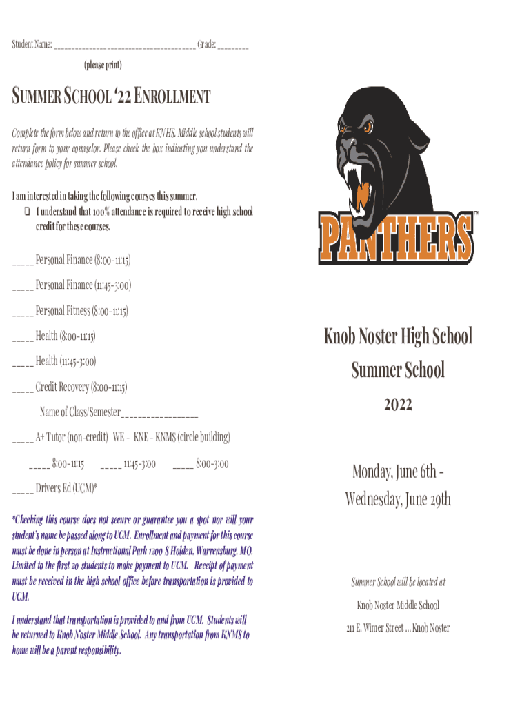 To fill out the summer school enrollment form, students typically need to provide personal information, course selections, and any necessary payment information.