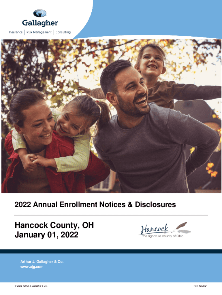 2022 Annual Enrollment Notices & Disclosures Hancock County, OH January 01, 2022Arthur J. Gallagher & Co. www.ajg.com 2022 Arthur J. Gallagher & Co. Rev. 12/08/21ANNUAL ENROLLMENT | JANUARY 2022Table