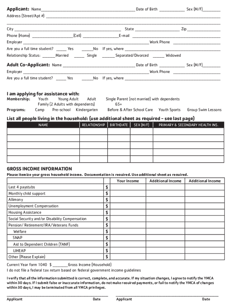 Get the free NORTH PENN YMCA Financial Assistance Application EXAMPLE
