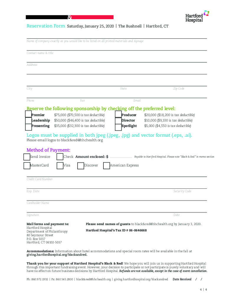 Black & Red Sponsorship Opportunities Saturday, January 25, 2020 | The Bushnell | Hartford, ConnecticutProceeds from the Black & Red to benefit digestive Disease Center at Hartford Hospital Sponsorship