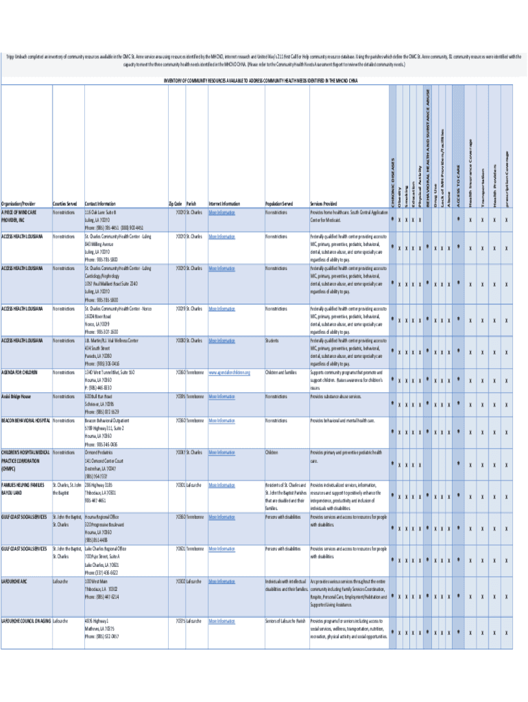 TrippUmbachcompletedaninventoryofcommunityresourcesavailableintheOMCSt. AnneserviceareausingresourcesidentifiedbytheMHCNO,internetresearchandUnitedWays211FirstCallforHelpcommunityresourcedatabase.