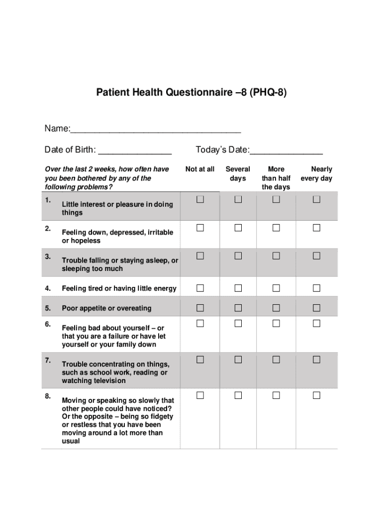 Patient Health Questionnaire 8 (PHQ8)Name:___