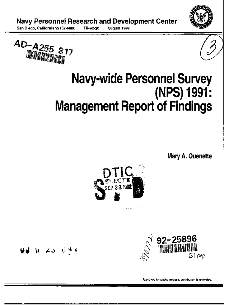 San Diego, California 921526800TR9220August 1992A A 2 55 817Navywide Personnel Survey