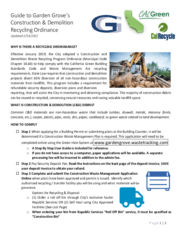 Get the free Guide to Garden Grove's Construction & Demolition Recycling ...