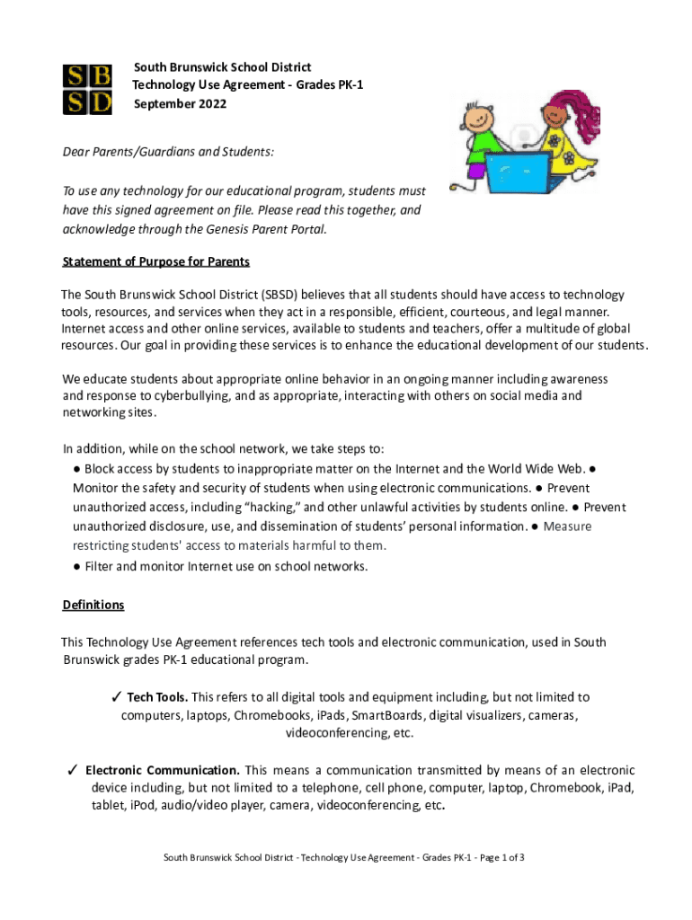 Get the free South Brunswick School District Technology Use Agreement