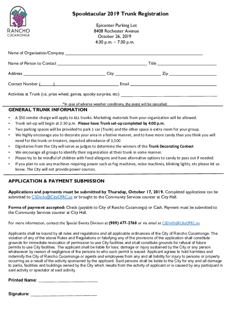 Spectacular 2019 Trunk Registration