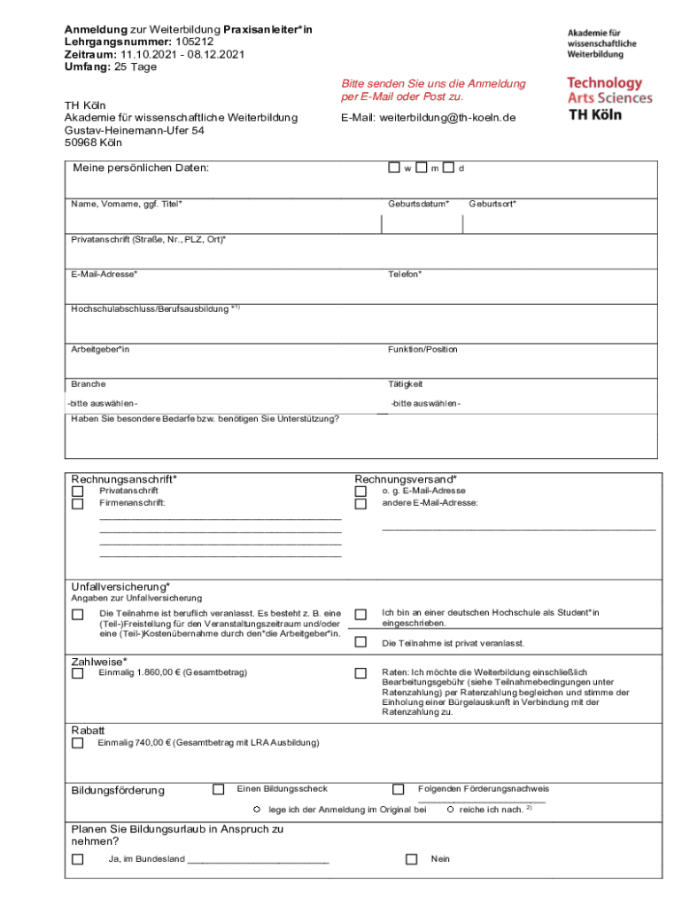 Amending our Weiterbildung Praxisanleiter×in Lehrgangsnummer: 105212 Latham: 11.10.2021 08.12.2021 Umfang: 25 Age TH Kiln Academic for wissenschaftliche Weiterbildung GustavHeinemannUfer 54 50968