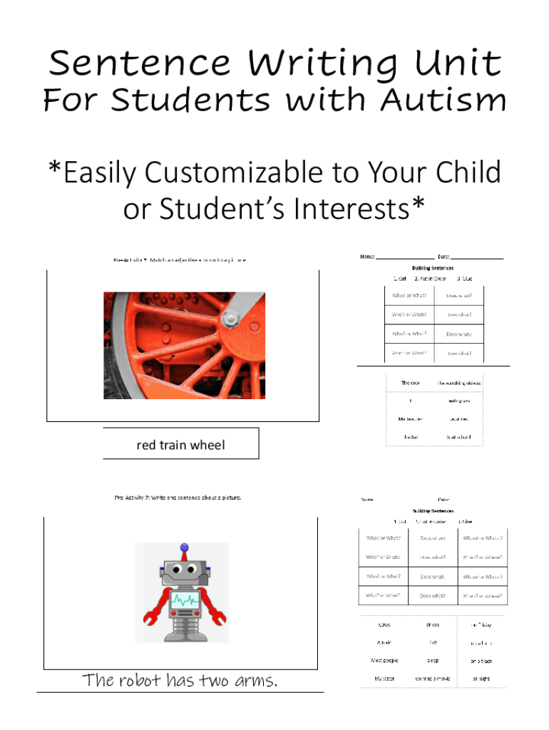 Get the free Sentence Writing Unit For Students with Autism Easily