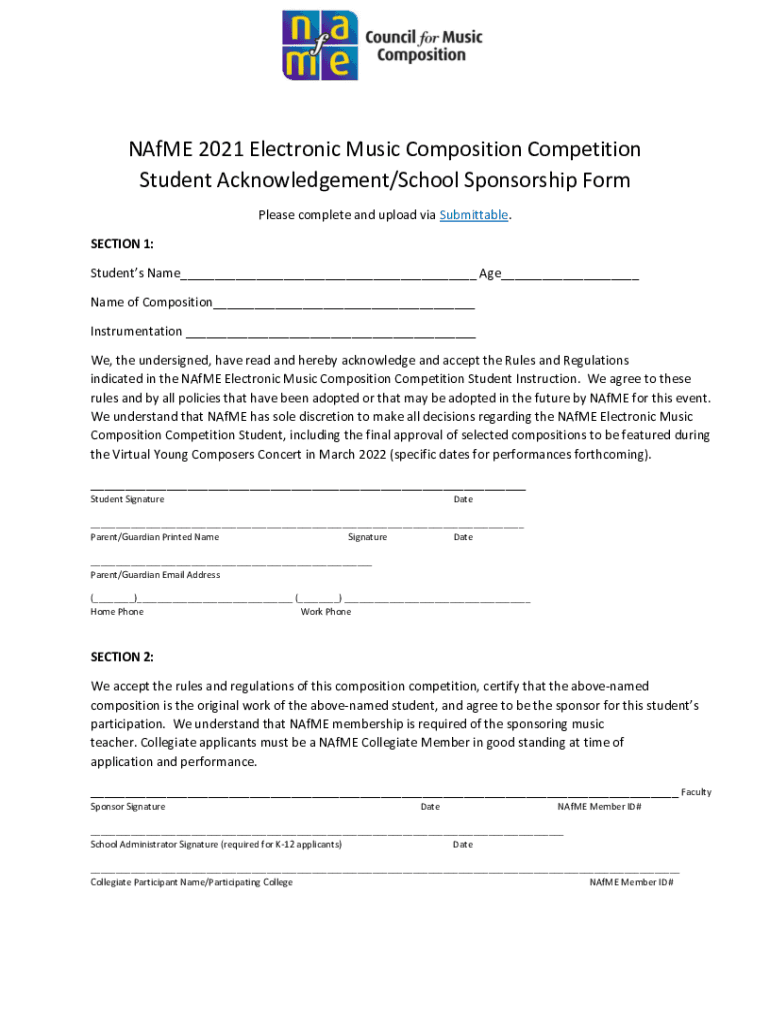 To fill out the NAfME electronic music competition entry form for 2022, participants must provide all requested information and follow the submission guidelines outlined by NAfME.