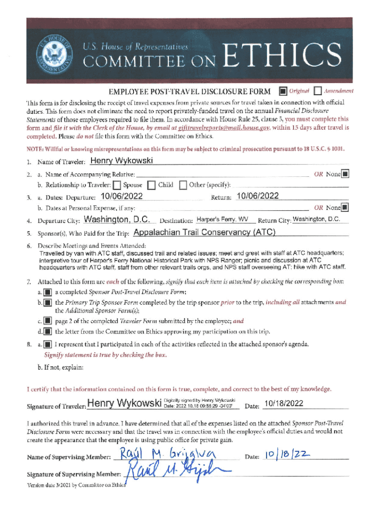 Ex Original o Amendment sponsor POSTURAL DISCLOSURE Forms form must be completed by an officer of any organization that served as the primary trip sponsor in providing travel expenses or reimbursement