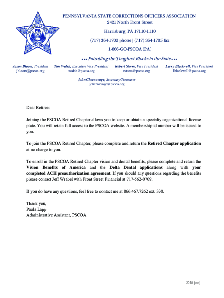 PENNSYLVANIA STATE CORRECTIONS OFFICERS ASSOCIATION 2421 North Front Street Harrisburg, PA 171101110 (717) 3641700 phone | (717) 3641705 fax 1866GOPSCOA (PA) Jason Bloom, President jbloom@pscoa.orgPatrolling