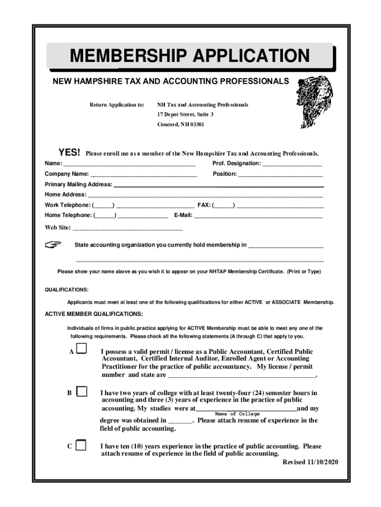 MEMBERSHIP APPLICATION NEW HAMPSHIRE TAX AND ACCOUNTING PROFESSIONALS Return Application to:NH Tax and Accounting Professionals 17 Depot Street, Suite 3 Concord, NH 03301YES! Please enroll me as a