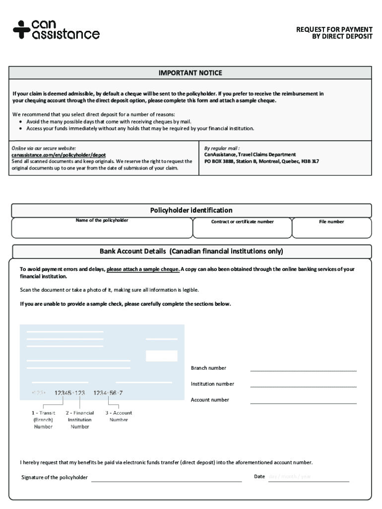 IMPORTANT NOTICE A duly completed and signed claim form is necessary even if you have not made any payments. Your provincial health plan covers partially some fees for medical care received during