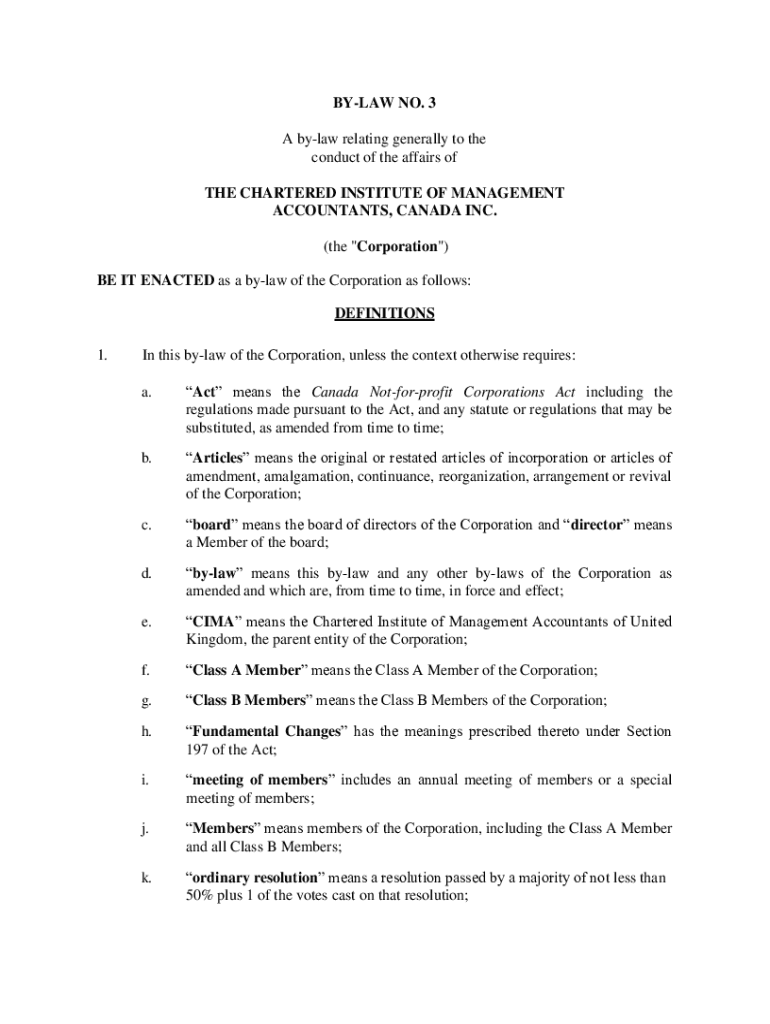 Get the free BY-LAW NO. 3 - Chartered Institute of Management Accountants
