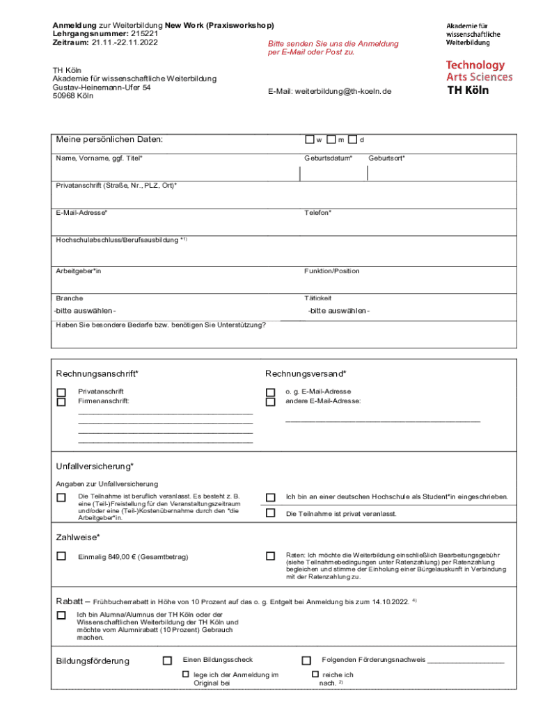 Amending our Weiterbildung New Work (Praxisworkshop) Lehrgangsnummer: 215221 Latham: 21.11.22.11.2022 Bitter sender She us die Amending per Email Oder Post EU. TH Kiln Academic for wissenschaftliche
