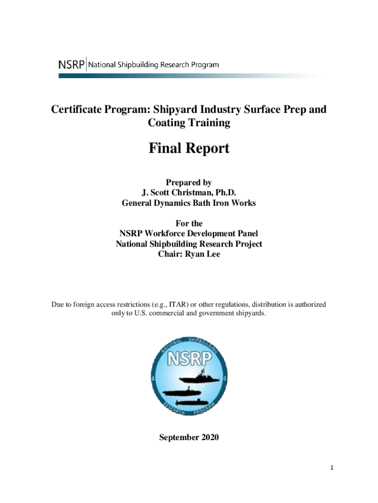 Certificate Program: Shipyard Industry Surface Prep and Coating TrainingFinal Report Prepared by J. Scott Christman, Ph.D. General Dynamics Bath Iron Works For the HSRP Workforce Development Panel