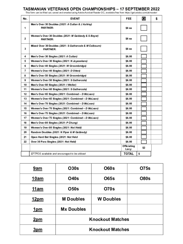 How to fill out stttaorgautasmanianopenentryform2022tasmanian open table tennis