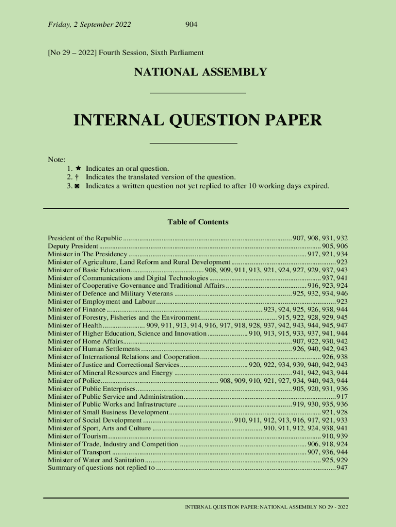 Get the free internal question paper: national assembly no 29 - 2022