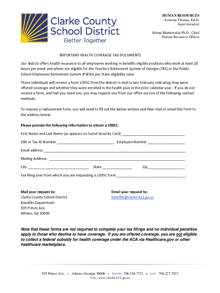 HUMAN RESOURCES Vernon Thomas, Ed. D. Superintendent Selena Blankenship Ph.D., Chief Human Resources OfficerIMPORTANT HEALTH COVERAGE TAX DOCUMENTS Our district offers health insurance to all employees