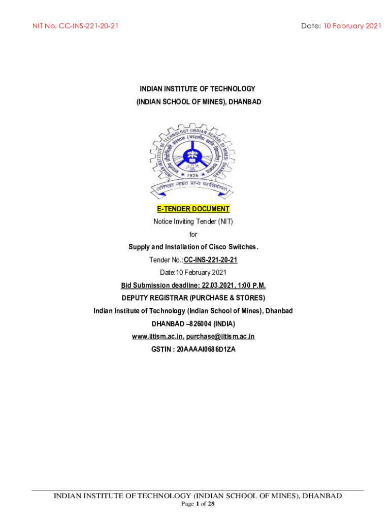 Get the free NIT No. CC-INS-221-20-21 - IIT(ISM) Dhanbad