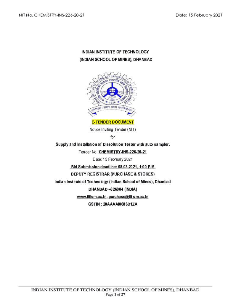 Get the free NIT No. CHEMISTRY-INS-226-20-21 Date: 15 February 2021