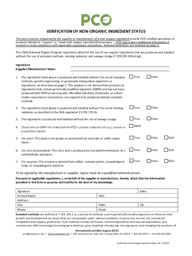 Get the free Verification of Non-Organic Ingredient Status.docx