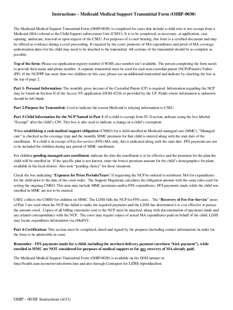 Get the free OHIP 0030I - Instructions - Medicaid Medical Support Transmittal Form ...