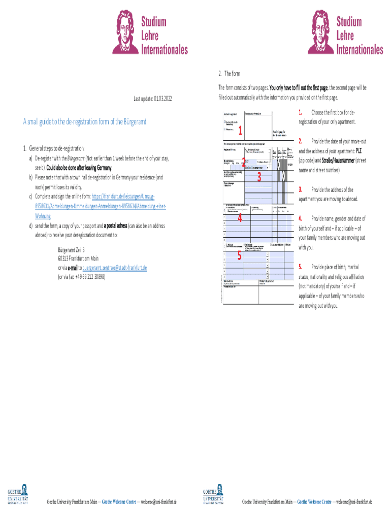 2. The form Last update: 01.03.2022A small guide to the deregistration form of the Breast 1. General steps to deregistration: a) Deregister with the Breast (Not earlier than 1 week before the end