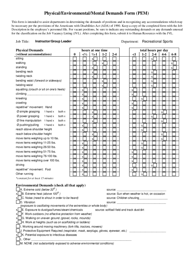 The studylibnetdoc16069799physicalenvironmentalmental demands form pem must include detailed descriptions of the physical tasks, environmental conditions, and mental requirements of the job.