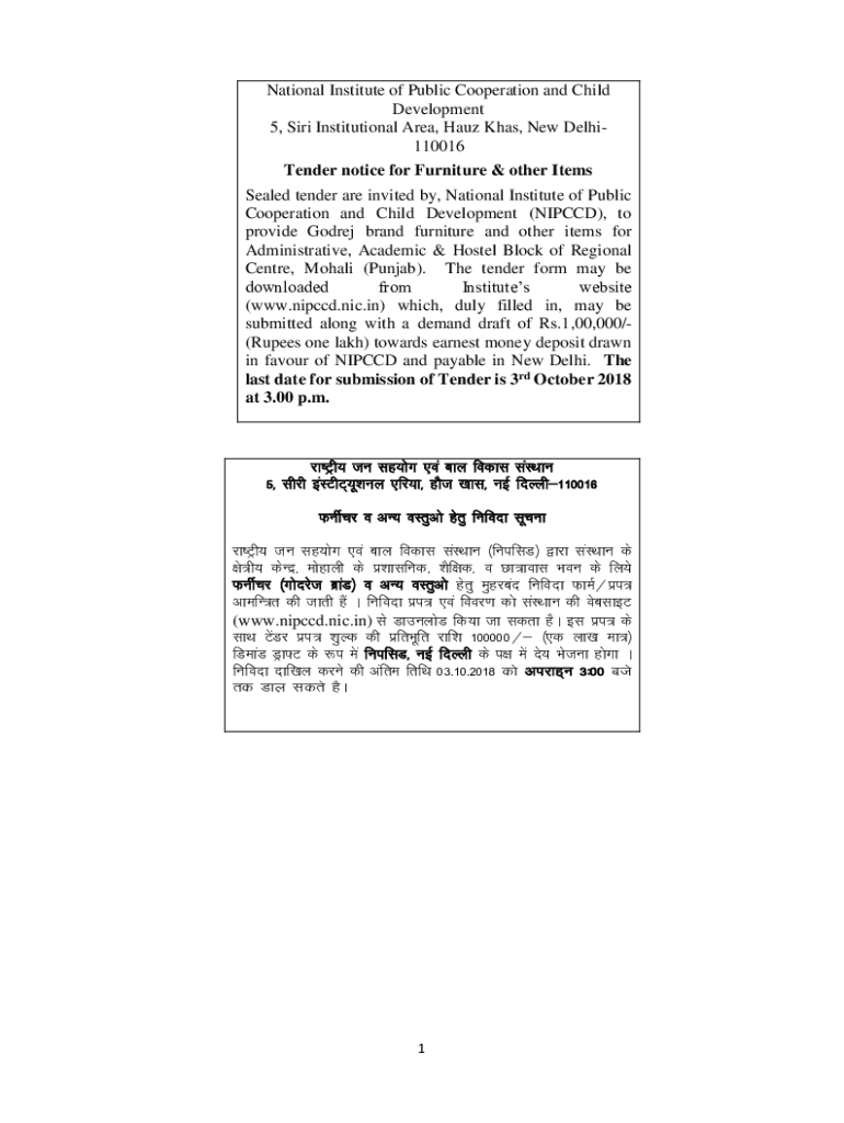 Get the free nipccd.nic.in uploads tenderTender notice for Furniture & other Items - nipccd.n...