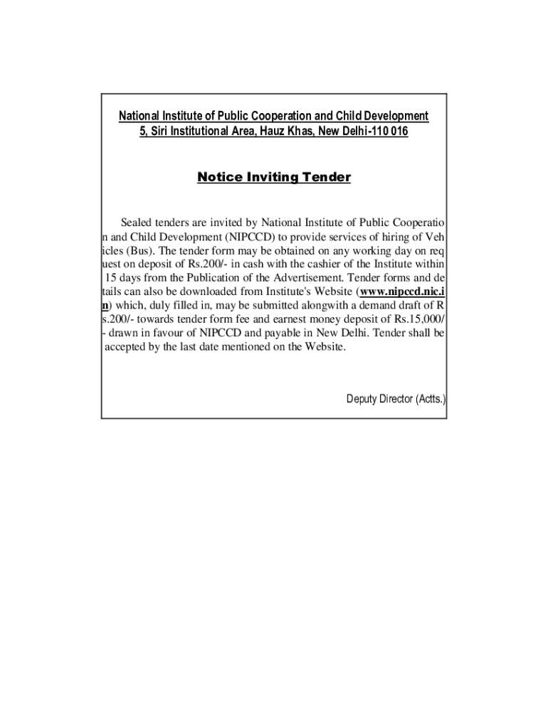 Notice Inviting Tenderhearted tenders are invited by National Institute of Public