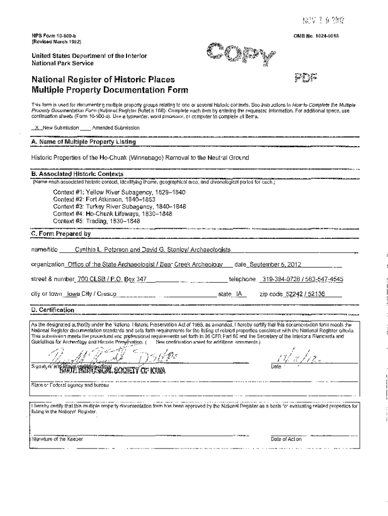 Get the free NPS Form 10-900-b 0MB NO. 1024-0018 United States Department of the ...