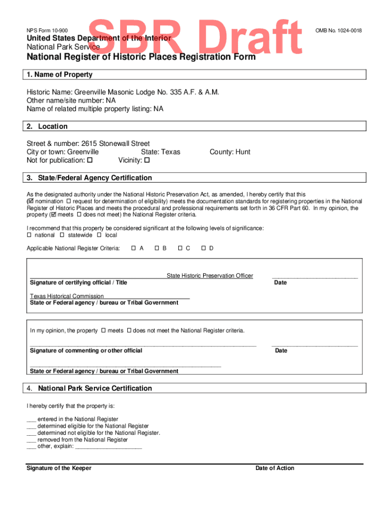 NPS Form 10900SBR Draft OMB No. 10240018United States Department of the Interior