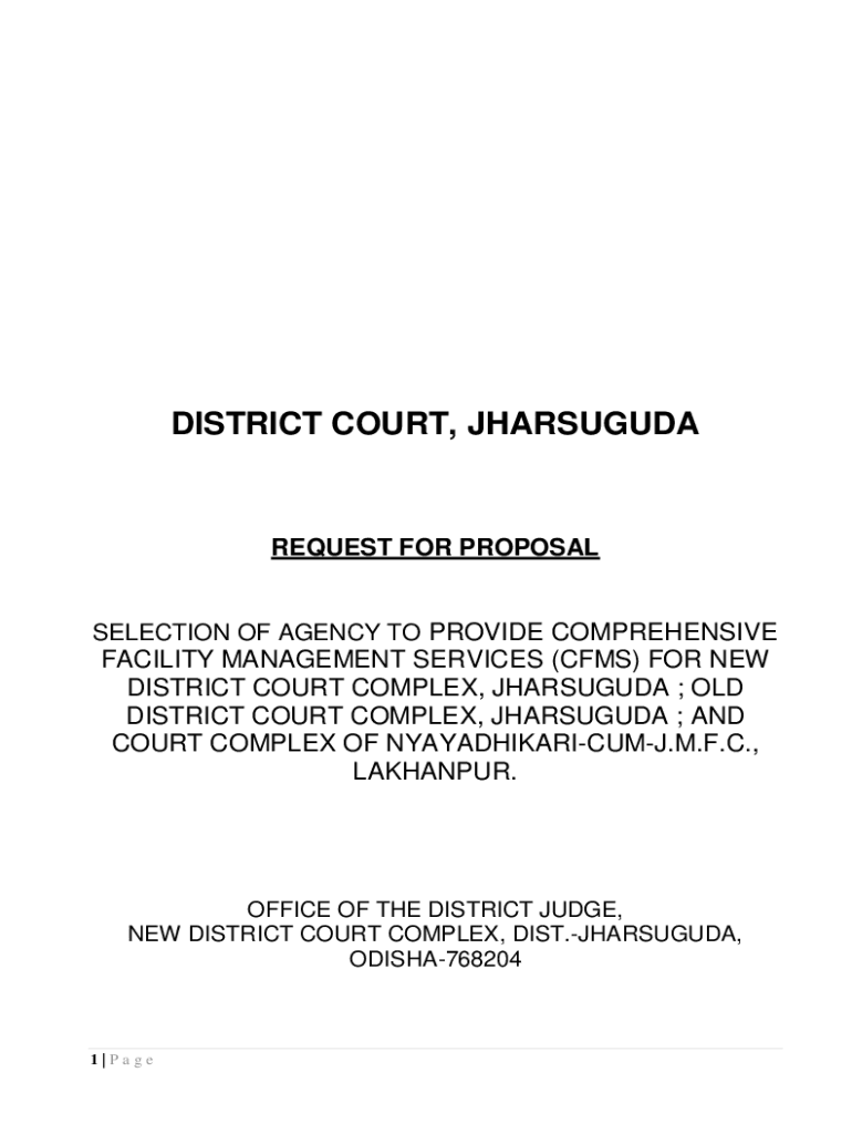 DISTRICT COURT, JHARSUGUDAREQUEST FOR PROPOSALSELECTION OF AGENCY TO PROVIDE COMPREHENSIVEFACILITY MANAGEMENT SERVICES (CFS) FOR NEW DISTRICT COURT COMPLEX, JHARSUGUDA ; OLD DISTRICT COURT COMPLEX,