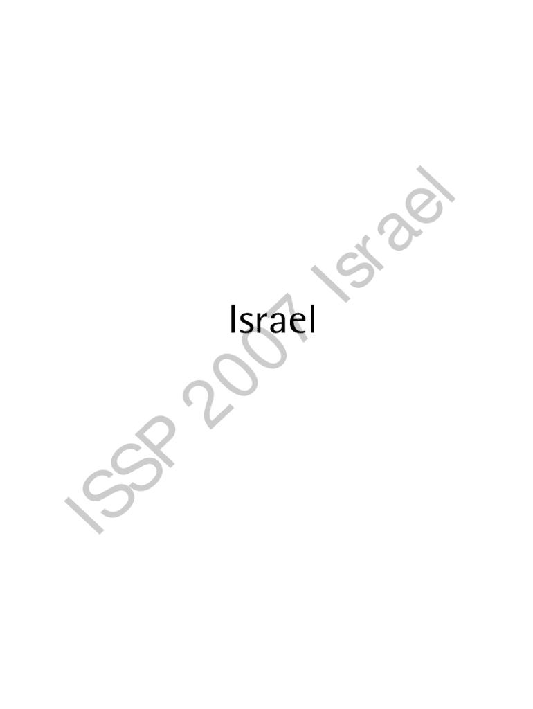 IS SP 0720 IsrIsraelae l2 Please name the ISP module which the documentation refers to (e.g., Work Orientations III / ISSP2005): Role of Government 2006, Leisure and Sport 2007 Please name your country:eye