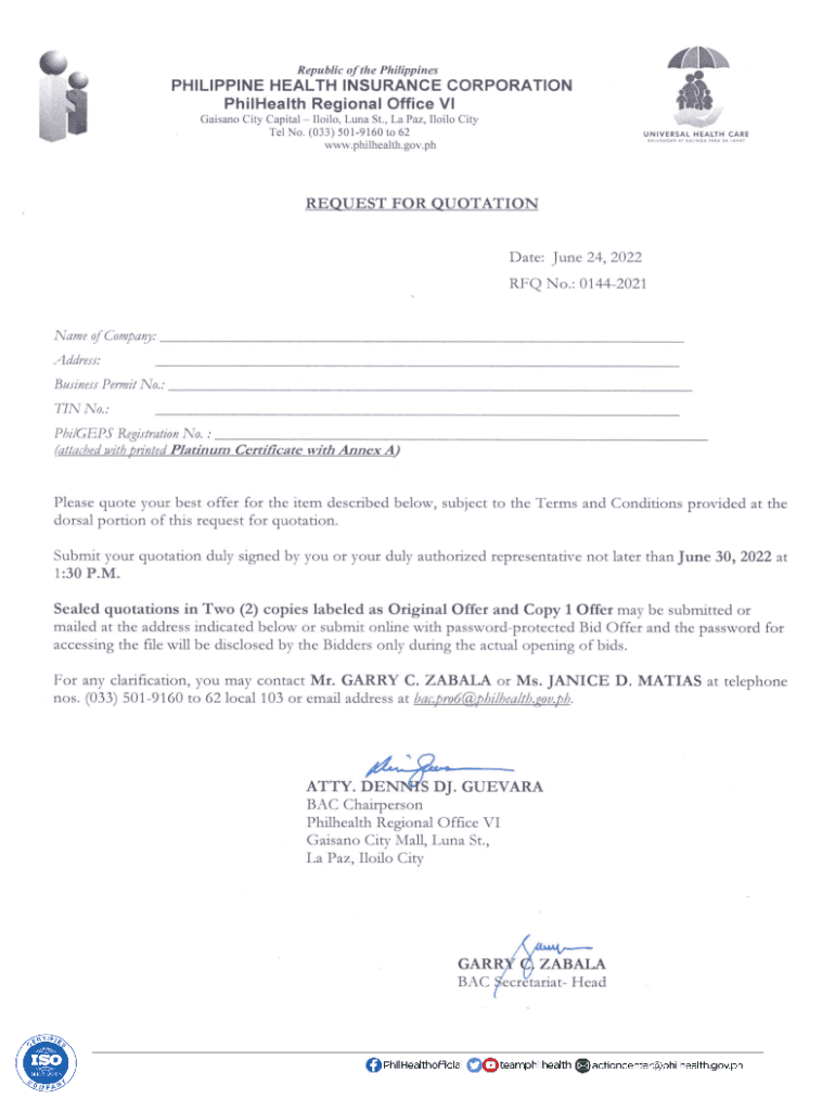 Republic of the PhilippinesPHILIPPINE HEALTH INSURANCE CORPORATION Philomath Regional Office VI Gaiman City Capital Lilo, Luna St., La Paz, Lilo City Tel No. (033) 5019160 to 62 www.philhealth.gov.phREQUEST