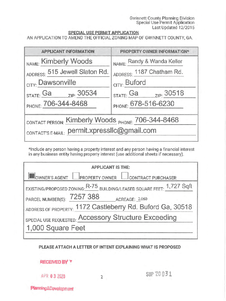 Gwinnett County Planning Division Special Use Permit Application Last Updated 12/2015 SPECIAL USE PERMIT APPLICATION AN APPLICATION TO AMEND THE OFFICIAL ON ING MAP OF GWINNETT COUNTY, GA.APPLICANT