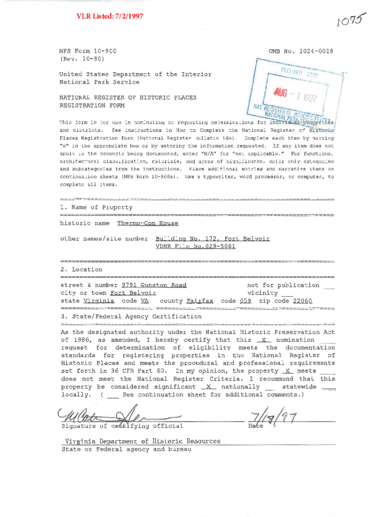 SLR Listed: 7/2/1997NPS Form 10900 (Rev. 1090)0 MB No. 10240018 ; United States Department of the Interior National Park Service NATIONAL REGISTER OF HISTORIC PLACES REGISTRATION FORM I \'IP.l1.:\'FNAT.