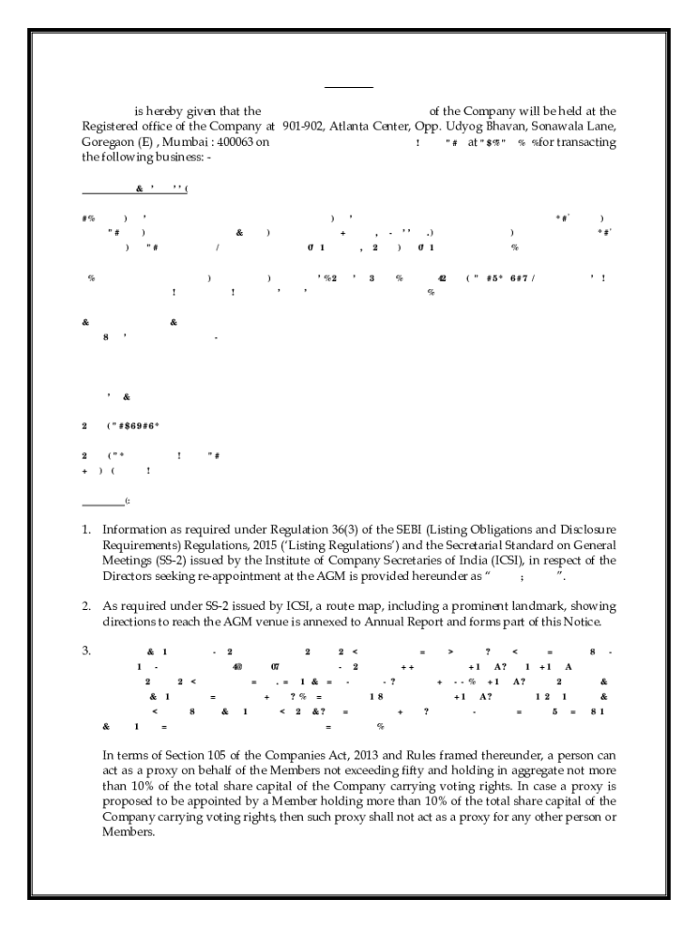 Get the free NOTICE NOTICE is hereby given that the 27th Annual General ...