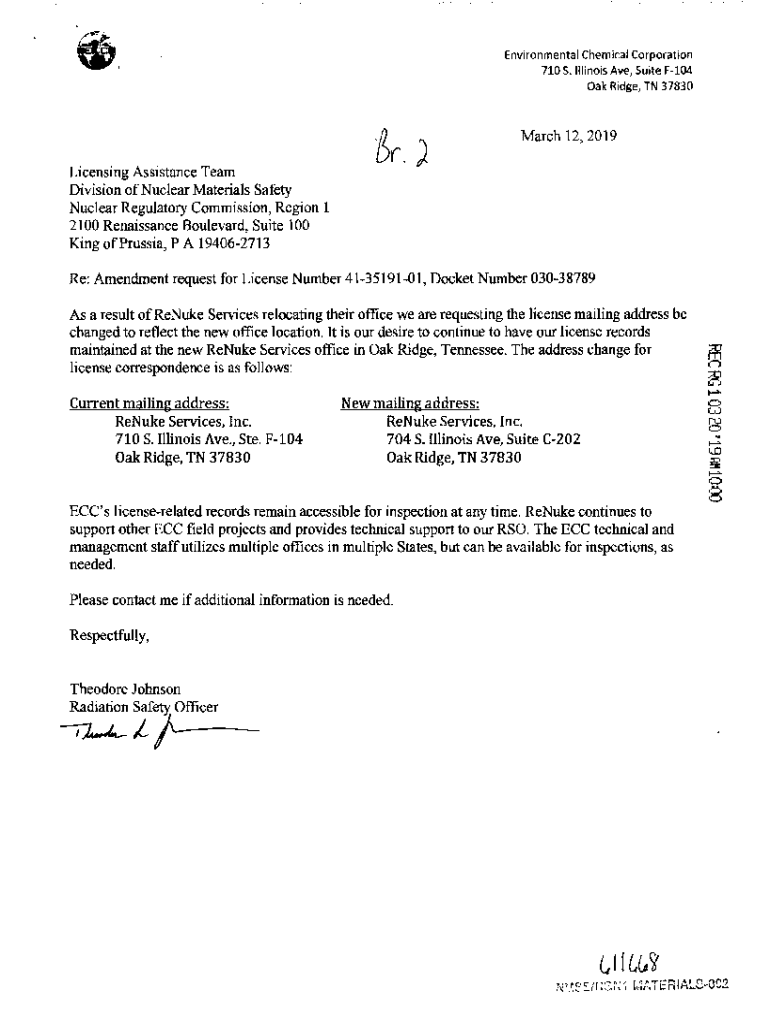 Get the free Environmental Chemical Corporation, Amendment Request Ltr. Dated March 12, 2019.