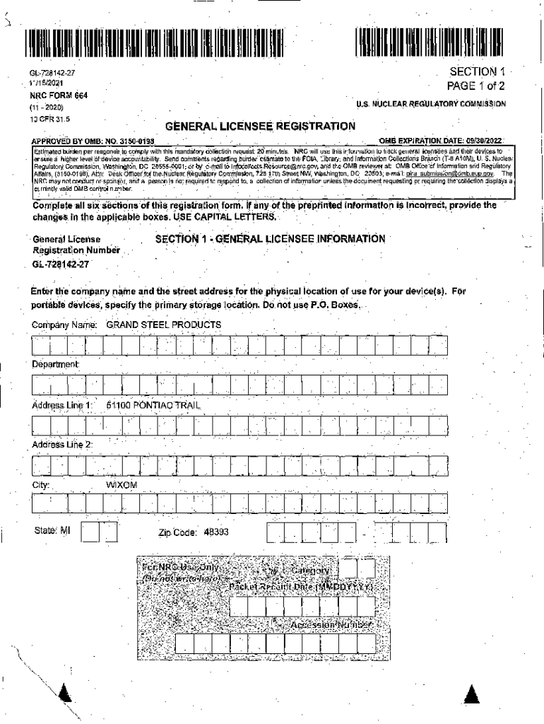 I)INHIBIT ITII I1111111111111111 1111111111111111111111111111111111111 111111111111111 ITII 111111111111111 1111 ......, \'Section 1GL72814227 11/15i2041PAGE 1 of 2NRC FORM 664 U.S. NUCLEAR REGULATORY
