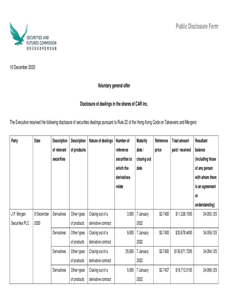 Public Disclosure Form10 December 2020