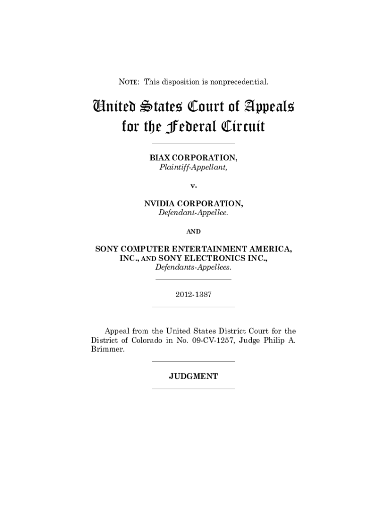 NOTE: This disposition is nonresidential. United States Court of Appeals for the Federal Circuit ___BIAS CORPORATION, PlaintiffAppellant, v. NVIDIA CORPORATION, DefendantAppellee. ANTHONY COMPUTER